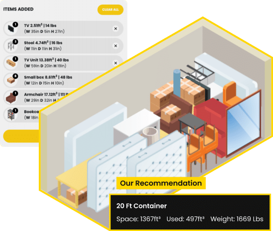 Use our quick online tool to calculate exactly how much space you’ll need to store your items.